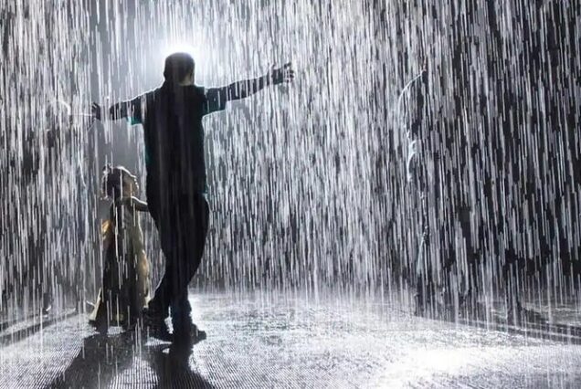 Enjoy a serene walk through controlled rainfall while experiencing a meditative atmosphere. The installation encourages slow movement, mindfulness, and appreciation of modern interactive art.